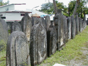 写真左は普通の人のお墓。てっぺんが尖ってるのが男性、丸まってるのが女性。
