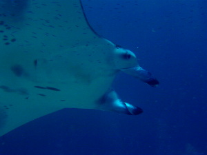 近くで見たのは初めてです。マンタって目をギョロギョロさせながら泳ぐんですね。