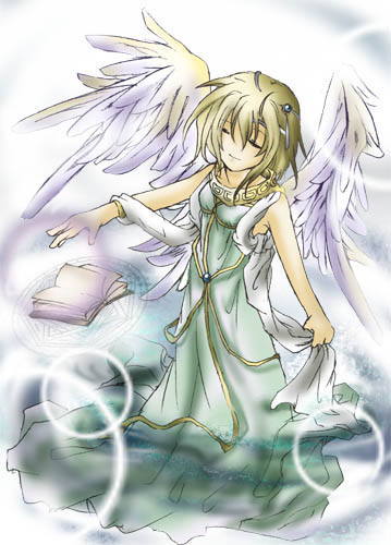 宗教画で本がある場合、誰が持っているかが重要らしい。あと水。 ………付け加え知識↑(笑) ちなみにこの絵、メモ帳に描いてしまったんですね。 このメモ帳、裏が表だったため、スキャナで取り込んだら…裏の線まで写ってしまいまして。 レベル補正しまくったら線が太くなった〜!! …以上、言い訳でした。