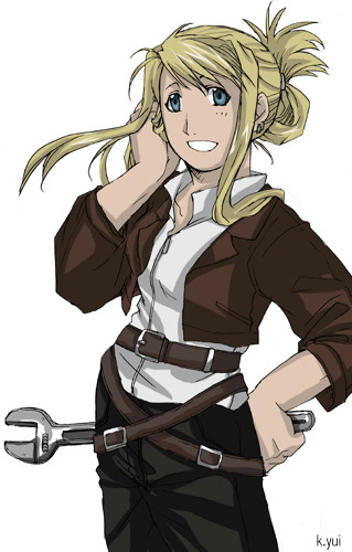 久々ウィンリィ。2回目か…??ウィンリィのリクエストも多かったです。 270000のキリ番申告なかったので、とりあえず皆さんのリクってことで(笑)。 スパナが異常に長いです。 え〜とですね、これ、目を描いた時点ではアルでした。 なので「もしかしたらこれひっくり返したら…」と遊んでみました。ココ