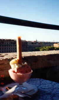 もちろんバールで一休み。Sピエトロ寺院がよく見えます。 ここのバールはオススメだなあ。ちなみにジェラートは冬だからなかった(笑)。コーラ(しか分からん)とサンドイッチとチョコケーキです。ポテチはおまけらしい。やったね(笑)。 寒い所為か、誰もいなかった(夏は混んでたけど)。強いぜ私ら。 |