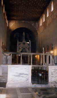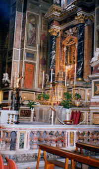 | †真実の口† ―マンホールのふたらしい(笑)。しかも、ここ、まるで檻みたいなところにある……。 ↓はその中の教会。ちょっとしたお店もありました。 |