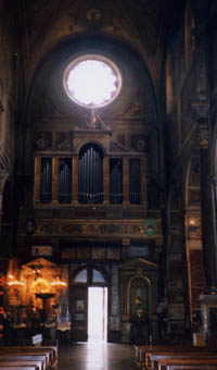 †サンタゴスティーノ教会† ―図書館から借りてきた『地球の歩きかた』で教会を探す。徒歩3分……ねえよ(爆)。この地図はお勧めできません。はっきり言って。まあ、徒歩3分の場所にはあるのですが。 教会の外と中↓ ―教会ってこういう建物が多いのかなあ?観光客がわりといた。 そして行きたかったお店、地図を見間違えた(またか)。それでもどうにかたどりつく(道聞いて)。 |