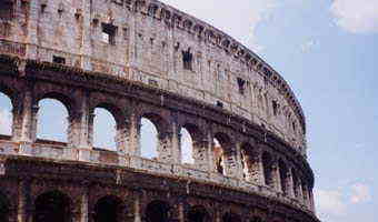 | ―――――――――――――――――――――…・・・† †コロッセオ周辺† ―世界遺産コロッセオ……とフォロロマーノ周辺。 でかい〜!!そして暑い。…入場するのに1時間くらいかかった。すごいなあ。ずっと昔の建物がこうして残っているんだもの。 ―何処もそうですが、すごく建物を大事にする国です。何もかも古い。修復している建物もすごく多い(そして工事中の足場がまた古い)。新築が全くないです。 ↓はコロッセオの近くの駅の…バール♪ |