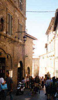 | 教会を見学後、コムーネ広場まで向かう(町の中心かな?)ここで、昼食あり組となし組に分かれる。わ〜「なし組」は自由時間が多いぜ〜! 上の写真は町から見える様子。→は町並み。結構な坂。町並みがステキです!フェバとかDQとか…こんな感じだろうなあ…と中世に迷い込んだみたい! 靴屋発見、ローマ2日で疲れていたので新しい靴欲しさに入る。…何か言い争っている……(汗)。いや、これって「早口」なだけ!?…とりあえずぼーっとしてたら話が終わったようだ。 「Buon giorno!」と挨拶。…ってサイズがわからんさ!とりあえず「サンダル」と言っただけだった…。でも足を見て奥から出してきてくれたサンダル。 「すごい〜!!」ぴったりです(あまりいいサイズが見つからない人)恐るべし、イタリア人(笑)。高くもなかった。 ハンドメイドレースが有名。なのでレース製品をGET。一目ぼれしたものがあったので、思わず店に入ってしまった。 あと、果物屋にも寄ったなあ。 ところで15日が祭日(聖母被昇天祭)なので、人が多い。スリに注意。 そこらにいたネコがおとなしかった。「我関せず」って感じだった。ちょっと相手して欲しかったのに、ネコの方が大人だった(笑)。 |