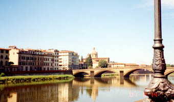 次の日気がついたけど、アルノ川に近かった。 有名なベッキオ橋がかかっている川。 ベッキオ橋を背にして撮ってます(意味ねえ)。 |