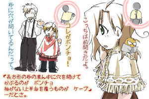 …穴あきがポンチョで前留めがケープでいいだろうよ? |