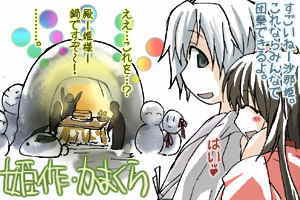 謙信様、どさくさに紛れて「自分と姫だけのかまくら」作りました。プライベートかまくらなんて…!何てヤツだ(笑)。
