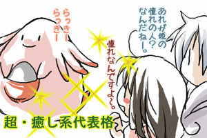 ポケモン図鑑によると「しあわせを はこぶと いわれている。 きずついたひとに タマゴを わけてあげる やさしい ポケモン」だそうだ。まさしく癒し系。