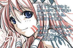 昔の絵を見てちょっと感化されて久々に描いた。↓と顔の向きが一緒とか言ってはいけない。青とピンクの子。たまたま絵の方でも色の話題を出したので。こんな子ですはい。青とピンクかわええ。