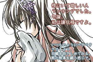 なんかまぁ、景勝人気ですね。景勝は抱きしめてあげたい。←義理の母視点(笑) |