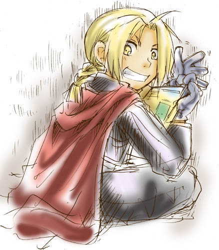 ラフ画にしようと思っていたので、色つけもレイヤー1枚しか使ってません(おい)。 とりあえず講座…なので「本を読んで勉強中」です。 つーか、色が間違っている箇所が。…手がね。肌色だよ…こっちは機械鎧だよ…。 こう、「味のあるラフ」が描きたいです(意味不明)。