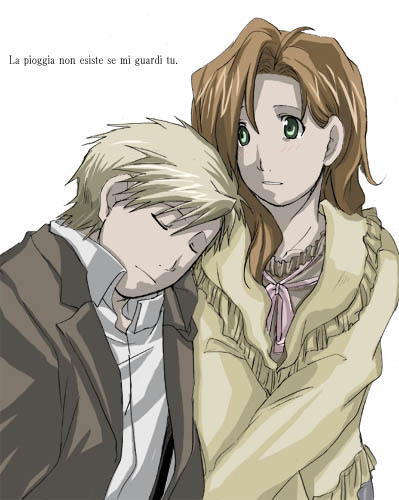 隣に描けば「君の隣」(オイ)。 寄りかかって寝られてしまった…ら、動けないよな?って感じです。 どうでもいいですが、ハイデリヒくん、かなりずり落ちてる状態かと。こんな状態でよく寝られるな…。 サエナの服、描くの楽しくて…!(笑) 2005.11.23(勤労感謝の日) 50お題へ ハガレンギャラリーへ