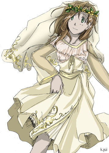 サークレットは蝋のオレンジの花だそうです。かわええ。