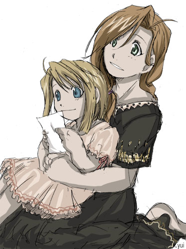 ちびウィンリィがリクで来ました。 普通のちびウィンを描かないあたりが私です(爆笑)。 さて、この子は何を見ているのか。 二人でワンピースで同系色だと融合してしまうので、サエナを黒っぽくしてみた。 何か新鮮だ。