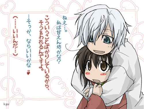 日記用に描いていたやつ。 後ろのうねうねした枠線、適当に一発描きですが、 こういう枠線、「おお!」って思えるようなのを描ける様になりたいものです。 「謙信は甘えん坊ですね」と言う拍手で頂いた感想から(笑)。 あまえっこーあまえっこー。