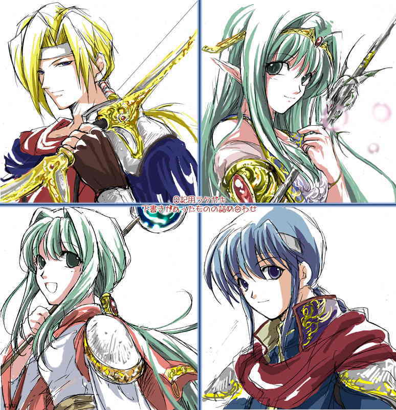 日記ラクガキの詰め合わせ。 ちょっと下まで描いてあったもの+色つけてあったもののみまとめてみました。 セリスなんて服がわからなくて適当です。 エスナの暗黒戦争時が結構派手な気がするのですが、レナさんだってオレンジの外套(初期)なのでいいかと(笑)。 日記のは普段殆ど下書きないので線画ってないんですわ。