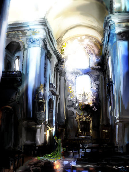 勝手に自分のサイトに貼り付け・配布が増えています。絶対にやめてください! 転載許可は出しておりません。どんな使用方法でも画像の転載・使用を禁じます! 恒例(?)モニターから5メートルくらい離れるとなんと「教会っぽく見える!」 描いてるとだんだん柱だか装飾だか何だかわからくなってくる…。 今回は(分かりにくいけど)チキと一緒。 青白くしてしまうのは氷竜神殿とかラーマン神殿が青系のMAPだったからだろうか…。 最初はベージュ系だったのに気が付いたら青くなってた(笑)。