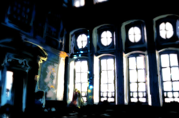 かた。 細く開けていた窓枠が風にあおられて動き、それから枝が入った一輪挿しが倒れそうになって慌てて受け止めた。 「うわ! …はー、よかった、零れてない」 気が付くと山に完全に光が消えた所だった。闇の衣があたりを覆い始める。 窓の外―――下を見れば、小さな蝋燭の灯りがいくつか。また数人の人影が分かる。 「……」 「万霊節、か?こんなところでこそこそと」 「! ジョルジュ…」 「……」 窓辺に戻したその枝を指先で弾き、エスナの手の中の飾りを見下ろした。 「こういうのは騒ぐようなもんじゃないがな、ただ、皆とやるのもいいだろう。死者の日に壁があるわけでもない。……それに木犀ならこの裏にもある。…今からでも遅くはないぜ」 「…いいよ、大丈夫」 ジョルジュのその提案に目を細くし、それからまた枝に目を落とした。 「ま、無理にとは言わんが…」 「ジョルジュ、ここに居て平気?…私、一人でも大丈夫だから」 またちらりと外を伺う。 「死者の日」―――それはこの世に在らざる者全ての者の日だ。もう届かない彼らを想う日。だから庭ではその彼らを想うために蝋燭が灯され、静かな歌が響いていた。 まだ、話が分からないチキはそれでもこの刻限、皆と一緒に外に居られることが楽しいのだろう、はしゃいでいる姿が見える。 「(あの場所には…まだ加われない…)」 「……クラウス、か。……だが、お前の兄なら俺の兄でもあるんだろう。……気にならないと言ったら嘘になる。…エスナがそこに居られないと思うのなら――…」 「…!」 「俺はお前の傍に居てやるよ。…いや、お前と、クラウス、か」 隣の肩にこつん、と額を当て。目を閉じた。 「…ジョルジュ…。……でもね、…―――ああ、じゃあ来年、…来年のこの日にはこの場所の木で祈らせて。クラウス兄様の事…」 「……ああ」 「ジョルジュ」 「あん?」 橙色の光はほぼ完全に山に沈み、部屋の灯りが外よりも強くなっていた。だから、窓の外を向いている二人の表情は分かりにくい。 「ありがとう…。…多分、兄様も……喜んでくれると思う…」 「……」 微かに光る目元を指先で拭う。それから一輪挿しの枝を引き抜いてそのまま抱きしめた。 言葉の代わりのその行動に、エスナは目を閉じて微かに香る木犀を感じながらジョルジュの背に手を回すのだった。 多分、クラウスの事を堂々と追悼…というかそういう事は遠慮してるかな、とか。 部屋でこっそりやってるのをジョルジュが発見、みたいな。 作中の「5月」が〜は以下の曲から。知人の訳をアレンジ。 リヒャルト・シュトラウス作曲 ヘルマン・フォン・ギルム作詩 「万霊節」 |