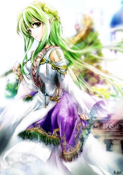 いつもと違う服を描こうとしたのに、あまり違わなかった(笑)。エスナは(…というか私が魔法系を描くと)こんな服ばかりですね。 神竜の時代、氷竜神殿(…に居た事になっていますウチの小説で)でのひと時みたいな。 ジョルジュとこれで話した場所とか。石でできた手摺っていいですよね。 杖はフィギュアエスナに持たせてもらった杖。