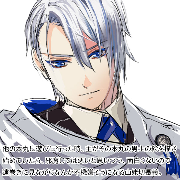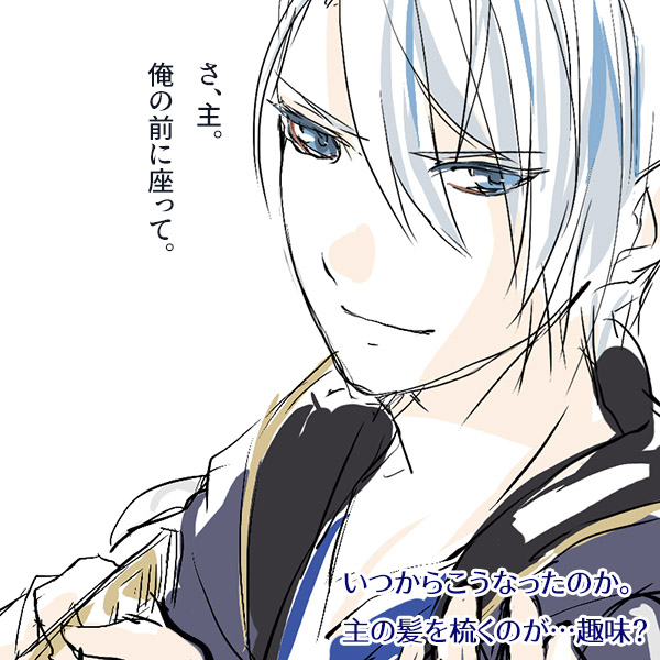| 主の髪を梳いてやるのが日課になっている長義さん。 | 何か不機嫌そう。 |
