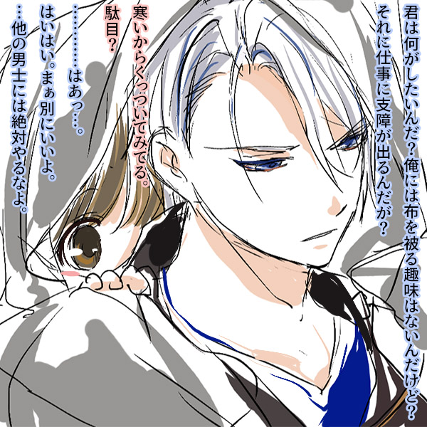 | 寒いので布かぶってくっついてみる。 そして話も書いてみた。 |