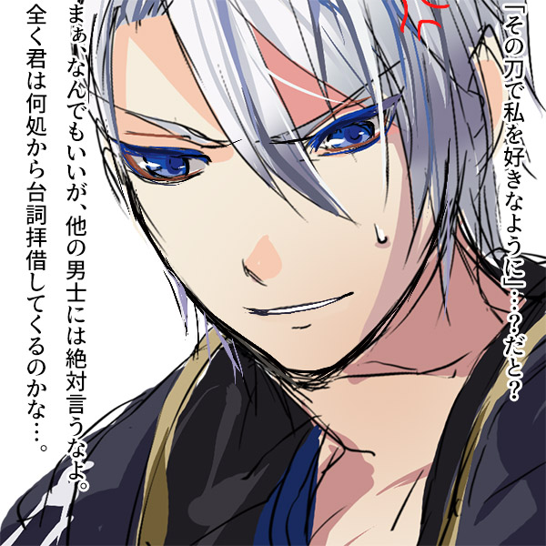 | 実は未だに髪型に迷走している。 | たまには長義以外も描けと言われたので国広。 |