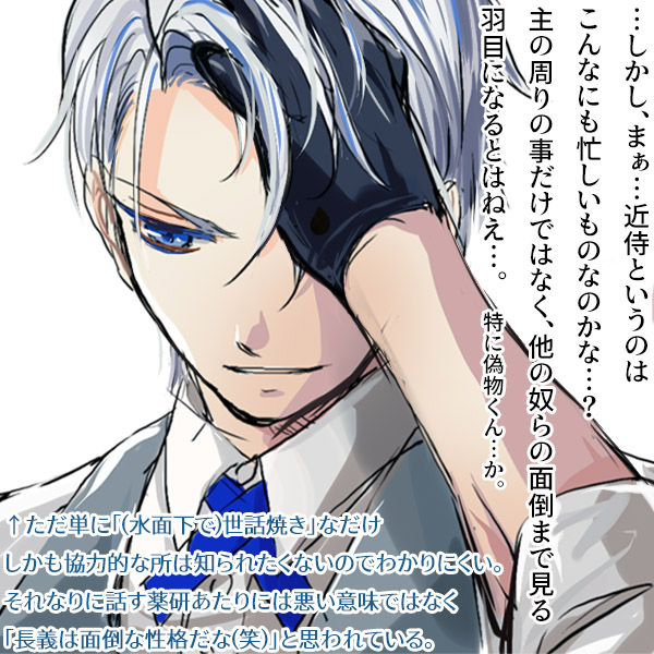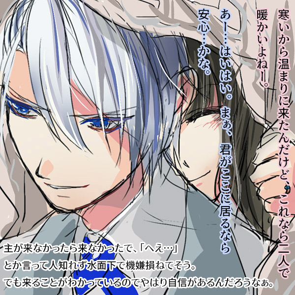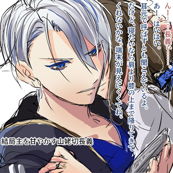 | 水面下で世話焼きなんですよ。うちの長義 | 背中から行くのは真正面からだと恥ずかしいからです(笑) |
