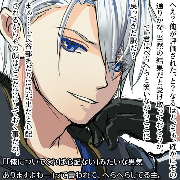 | 内番服ー。 | 機嫌が悪かった山姥切長義 |