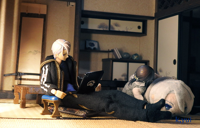 | 酒に酔った刀剣男士が〜ってお題だったかな | 長義にくっついて邪魔してる主 |
