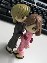 | (左)なんか…ロングヘアがあったんでリペして付けてみた。 何気にちょっとかわいい(014の短めなのもかわいかった)。でも年齢が上がった雰囲気ですか? 動きがある髪なので手がちょっと押さえてるっぽくないですかね?? (右)ハイデリヒとエド・アルも浴衣シリーズやったのでサエナも(え、いらんと?まあ、そう言わずに)。 けっこう身長差あるんです。 |