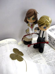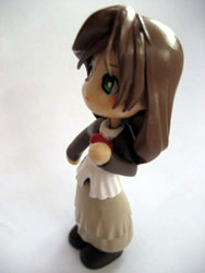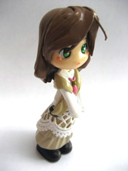 | うちのシャンバラ鋼小説から出てきた半分オリジナル(ビミョー)キャラ。 トリシャお母さんがベースのイタリア娘。このサエナピンキーに紫のワンピ(白エプロン付き)を着せればトリシャさんになります。ちょっと年齢が違う『エルリック親子』も再現可(笑)。 適当に付けた名前の筈が、「シエナ」(地名)の昔読みだかなんだかでちょっと運命な気分です。…でも、こんなファミリーネームのイタリア人はいませんヨ。 …ってなわけでオリジナルが立体化! 生まれる前から「イタリア行き」が決まっていたので、アンテナはアリタリア航空機から落としても壊れないよう(壊れるよ)、……そういう素材です(どんなだ)。←知らないらしい。 製作者さん曰く、「ハイデリヒとセット」ですので、身長も若干ハイデリヒより低くなってます…が、頭がでかいので存在感はあります(笑)。かわいがってもらって幸せな子ですな。 サイト内の絵を見てもらえれば分かるように、服まで完全再現! オプションでいただいた上半身は…ストール付きだぁ!イェイ。「女の子はストール同盟」かわえー。 物持ちな子で、カバンはかなり所有してます。 |