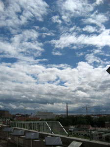 左:6階から外に出たら、清々しい風でした。空もこんな感じ。