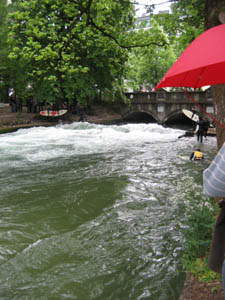 中:海がないミュンヘンでは、ここでサーフィンしますよ。英国庭園の中、…まず何処だか分からなかったんでとにかく歩いて探しました。ホントにやってました。この英国庭園、予備知識がないと迷います(私だけか)。