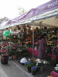 左:グレイシアさんち…というか市場の花屋さん。花屋さんも結構多いです。
