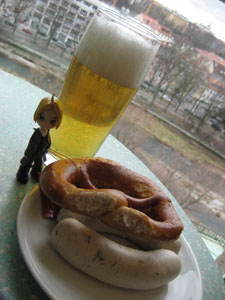 右:おなじみ博物館内カフェ。…って言いながらビールと白ソーセージ。