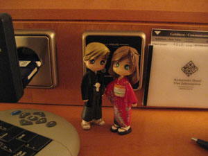 振袖・紋付を持って行ったので撮影ー。左の黒いのはデジカメ充電中〜。