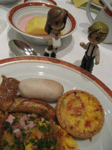 右:おなじみ白ソーセージとエド。下にあるのは私が作ったミニチュアー!(笑)