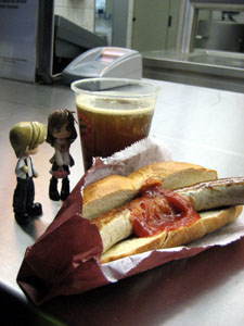 ケチャップをかける機械があります。「それでかけてね」と言われ…やってみたら、勢いがいいんだわ、これ。