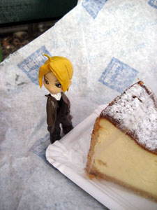 中:晴天・寒空の下、教会の前の公園で…何故かケーゼクーヘンを食す(駅のパン屋で購入)。思ったより重くなく、あっさり目でした。