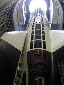 このフロアは吹き抜けになっておりまして、大きい飛行機は吊ってあったり、↑のロケット(コレもかなり大きい。V2ロケット)は1〜4階にかかるように置いてあります。