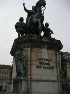 右:ルートヴィヒ通りに入った直後にある像。いろんな意味で分かりやすいですね。