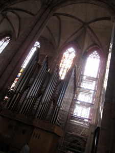 オルガンが横だったような気がするのですが…だとしたら珍しいかなぁ…。大体、オルガンって真正面と対になっている教会が多いので(つまり出入口の真上)。